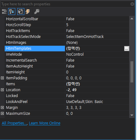 속성 창을 보면 HtmlTemplates라는것이 있다. [...]을 눌러보자