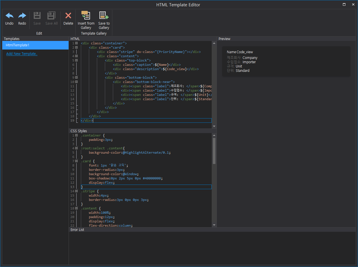 html과 CSS를 적용할수 있는 코드창이 열리게 된다.
