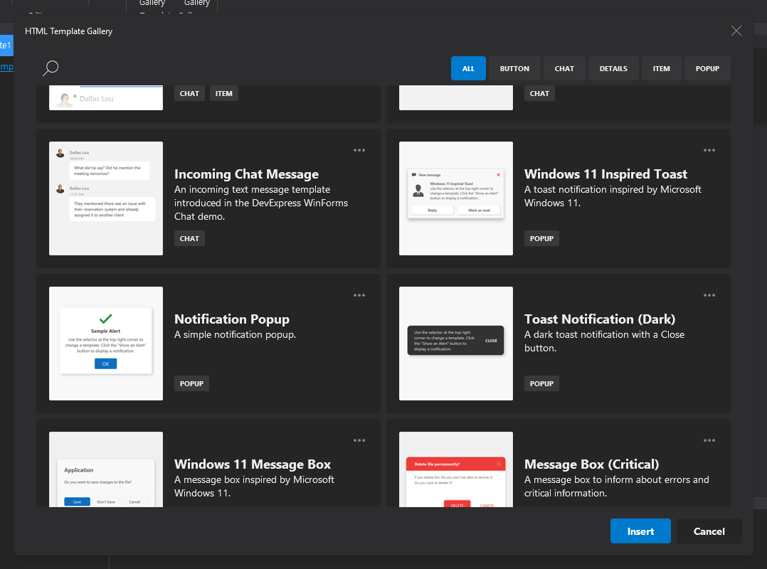 Devexpress에서 제공하는 Html Template들이 쫘르르륵 나온다.